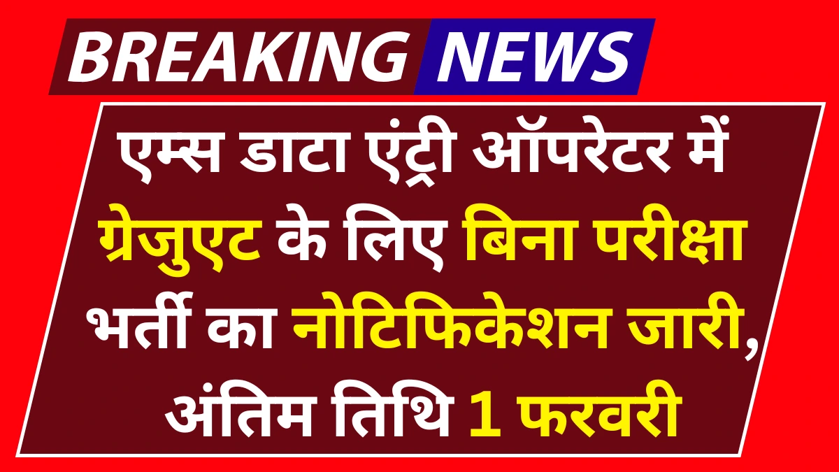 AIIMS Data Entry Operator Vacancy 2025: एम्स डाटा एंट्री ऑपरेटर में ग्रेजुएट के लिए बिना परीक्षा भर्ती का नोटिफिकेशन जारी, अंतिम तिथि 1 फरवरी